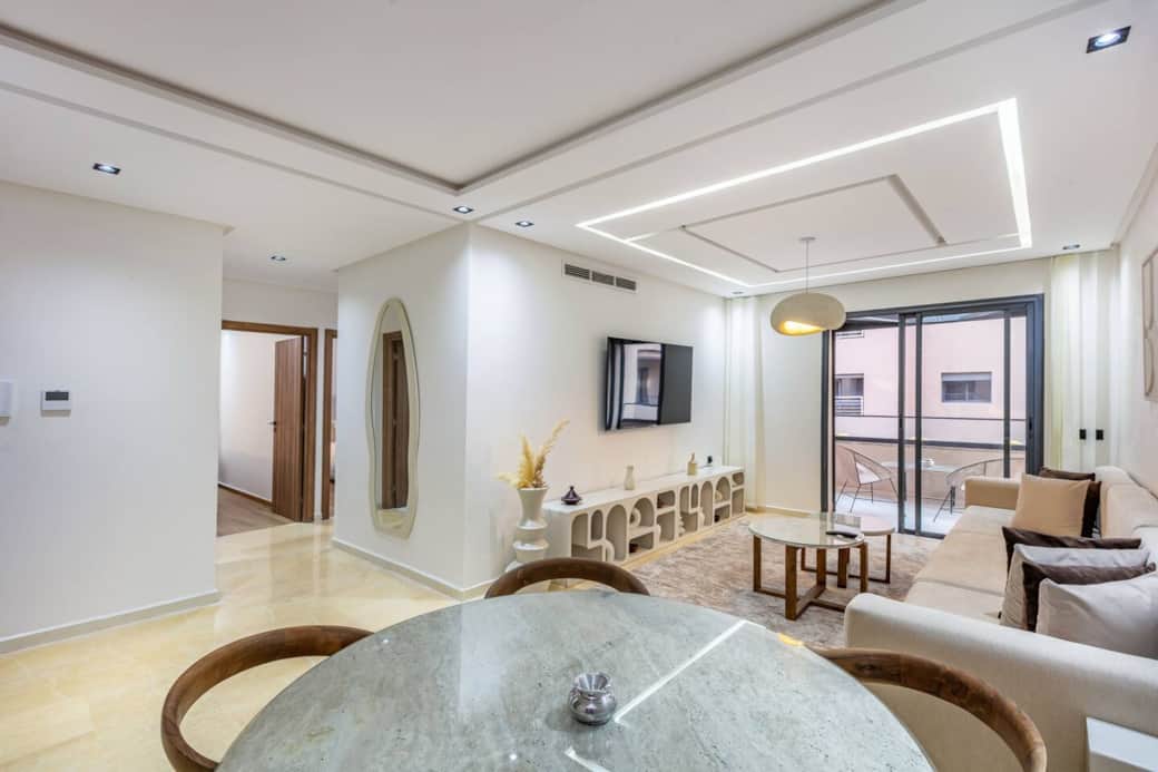 Bienvenue dans ce bel appartement moderne de 3 chambres et 2 salles de bains, à 3 min du Menara Mall et 2 min de M Avenue. Situé dans une résidence sécurisée avec piscine 🏊♂️, il offre un salon lumineux, une cuisine équipée, le wifi haut débit 📶 et une place de parking privée 🚗. Idéal pour un séjour alliant confort, détente 😌 et proximité des principales attractions 🌟. ✨ Appartement moderne et lumineux avec piscine – à 2 min de M Avenue et 3 min du Menara Mall Situé dans la résidence Menara Garden, calme, récente et entièrement sécurisée, cet appartement moderne et soigneusement décoré offre un cadre idéal pour un séjour à Marrakech. À seulement 2 minutes de M Avenue et moins de 5 minutes du Menara Mall, vous profiterez d’un emplacement privilégié, à proximité des meilleures adresses de la ville. L’appartement se compose de 3 chambres élégantes, chacune équipée d’un lit double, de rangement intégré et de climatisation. La chambre principale se distingue par son ambiance chaleureuse, parfaite pour des nuits reposantes. Les 2 salles de bain modernes sont équipées de douches à l’italienne, de vasques contemporaines et de matériaux de qualité, alliant confort et praticité pour toute la famille. Le salon lumineux offre un bel espace de détente avec un grand canapé d’angle, une télévision murale, une décoration raffinée et un accès direct au balcon. Celui-ci est aménagé avec une table et des chaises, idéal pour savourer un café au soleil ou un dîner en plein air avec une vue agréable sur la piscine. La cuisine moderne est entièrement équipée : plaque de cuisson, micro-ondes, réfrigérateur, bouilloire, grille-pain et machine à laver. Vous y trouverez tout le nécessaire pour préparer vos repas comme à la maison. Enfin, la résidence propose une piscine commune bien entretenue, un cadre verdoyant et une atmosphère paisible — parfaite pour se détendre après une journée de visite ou de shopping. Cet appartement réunit emplacement, confort et élégance, pour un séjour à Marrakech alliant détente et modernité. Le logement est entièrement réservé aux voyageurs 🏡 🗝️ Profitez d'un espace 100 % privé rien que pour vous. 📞 toujours disponible et réactif en cas de besoin, je suis là pour vous assister tout au long de votre séjour 😀 Je partage aussi avec plaisir mes bon plan locaux : transports fiables, restos sympas, activités à ne pas manquer et bien plus encore ! Votre satisfaction est notre priorité. Je reste à votre disposition à tout moment.