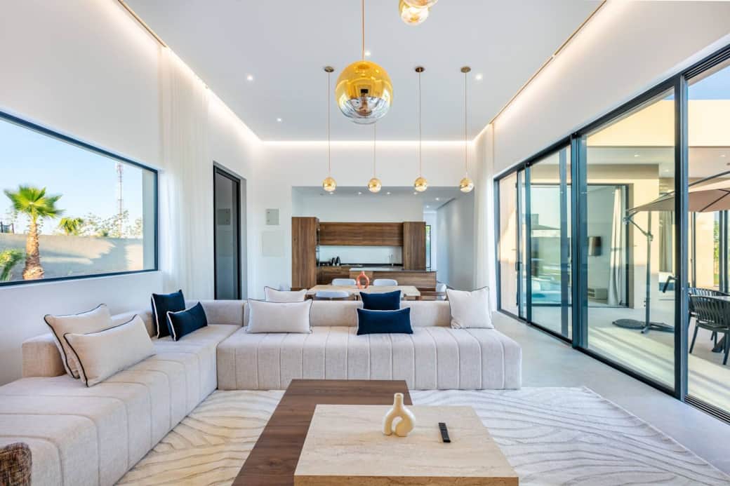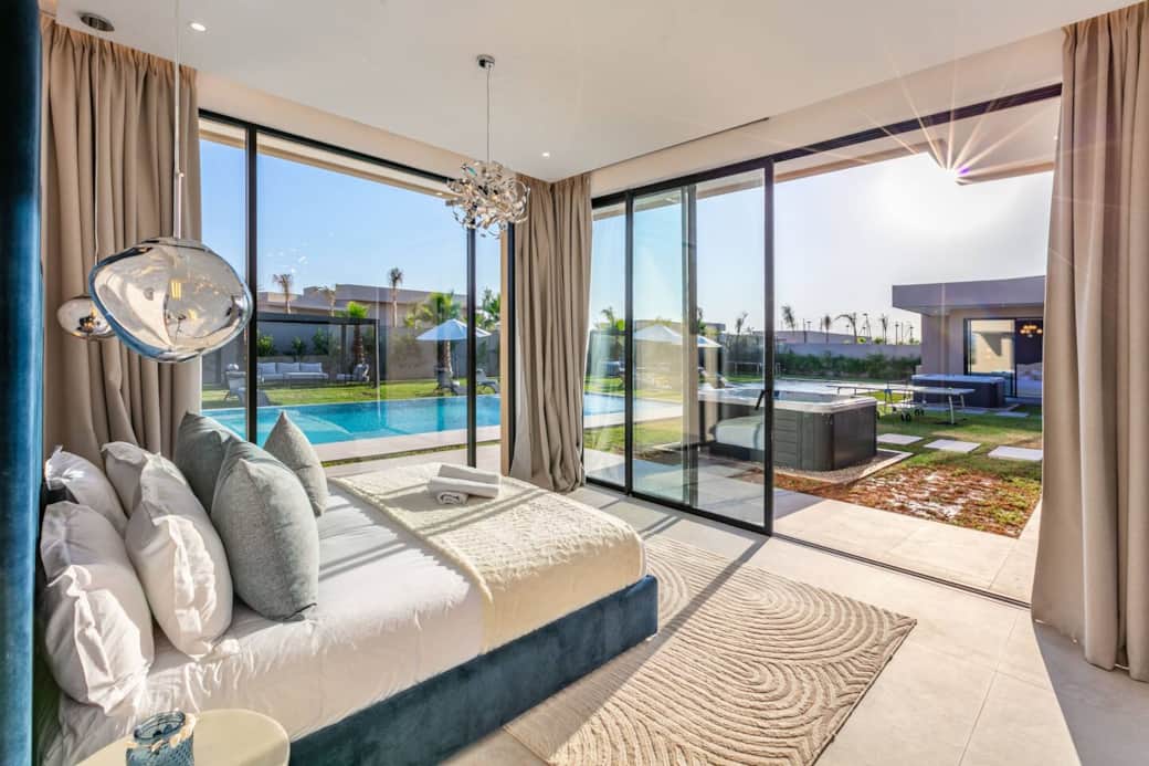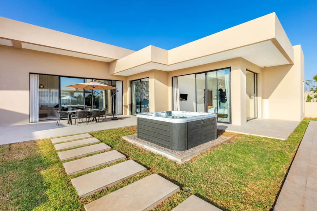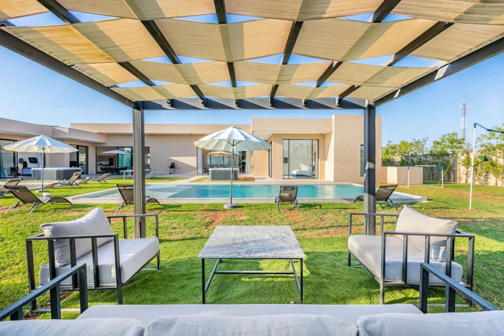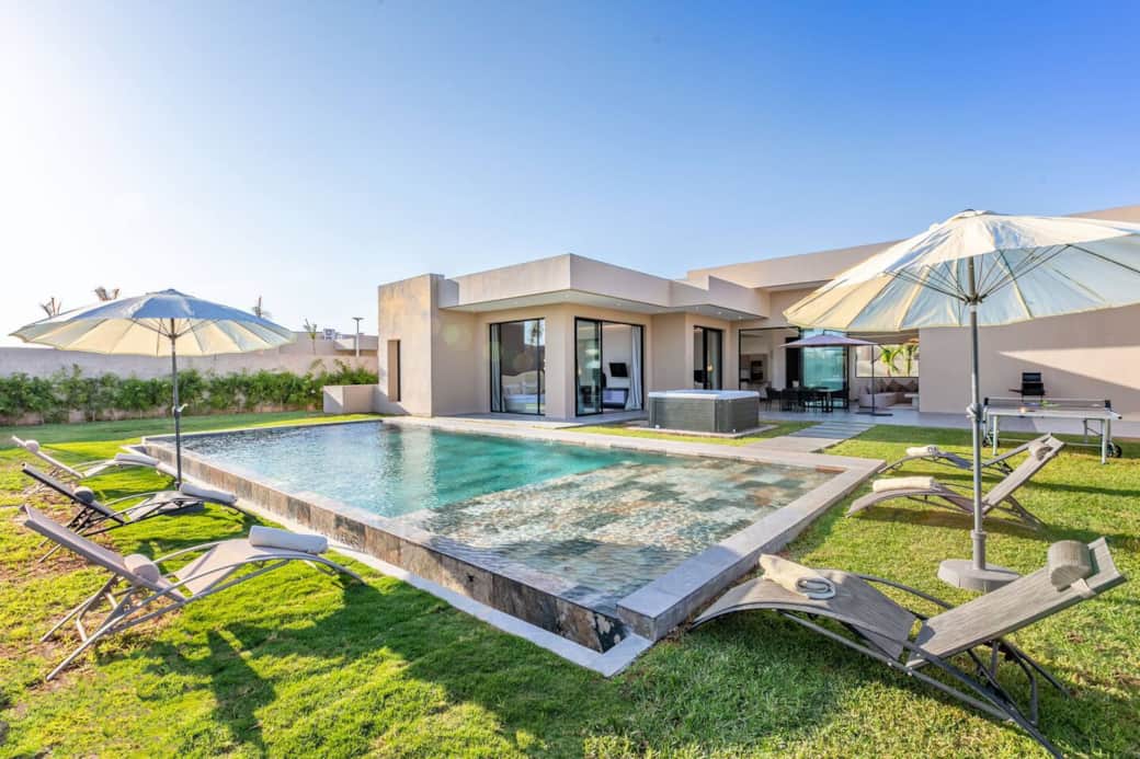 Villa moderne alliant confort et élégance. Deux salons décorés avec goût offrent détente et convivialité. Trois chambres (une avec deux lits simples, deux avec lits king size) et trois salles de bain modernes assurent confort et intimité. Cuisine équipée haut de gamme, salle à manger intérieure et extérieur. Profitez de la piscine privée, du jacuzzi et des espaces raffinés pour des moments inoubliables en famille ou entre amis. Description des pièces et espaces Salon : Un espace convivial et lumineux, équipé de canapés confortables, d’une table basse et d’une télévision. Idéal pour se détendre après une journée de visite. Chambres : Plusieurs chambres spacieuses, chacune dotée de lits confortables, de rangements et de linge de maison fourni. Certaines disposent d’une salle de bain attenante. Cuisine : Entièrement équipée avec réfrigérateur, four, plaques de cuisson, ustensiles et vaisselle. Parfaite pour préparer vos repas comme à la maison. Salle à manger : Une grande table permettant de partager vos repas en famille ou entre amis. Salles de bain : Modernes et fonctionnelles, avec douche ou baignoire, serviettes et articles de toilette de base. Espaces extérieurs : Terrasse ou jardin (selon le logement), offrant un cadre agréable pour profiter du soleil ou dîner en plein air. Autres commodités : Connexion Wi-Fi, climatisation/chauffage, machine à laver et places de stationnement si disponibles. Si vous avez besoin d’aide pendant votre séjour, n’hésitez pas à me contacter directement. Je reste disponible pour répondre à vos questions et vous assister à tout moment. Horaires hiver : 9h à 19h Réservation auprès de votre agent d’accueil 🌟 Terrain de Padel ⏱️ 1h : 200 MAD ⏱️ 1h30 : 250 MAD 📦 Packs selon la durée du séjour Pack Découverte (1–3 nuits) : 2 sessions → 350 MAD Pack Confort (4–6 nuits) : 3 sessions → 500 MAD Pack Premium (7 nuits et +) : 5 sessions → 750 MAD
